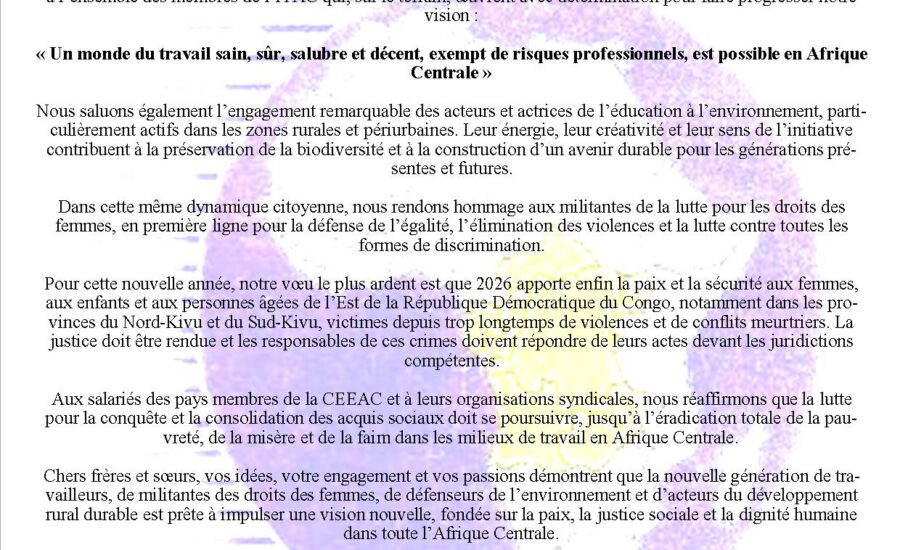 Les vœux engagés de l’ITAC pour 2026, à l’aube de l’année 2026, le Conseil d’Administration de l’Institut du Travail de l’Afrique Centrale (ITAC) adresse un message de vœux profondément ancré dans les réalités et les aspirations des peuples